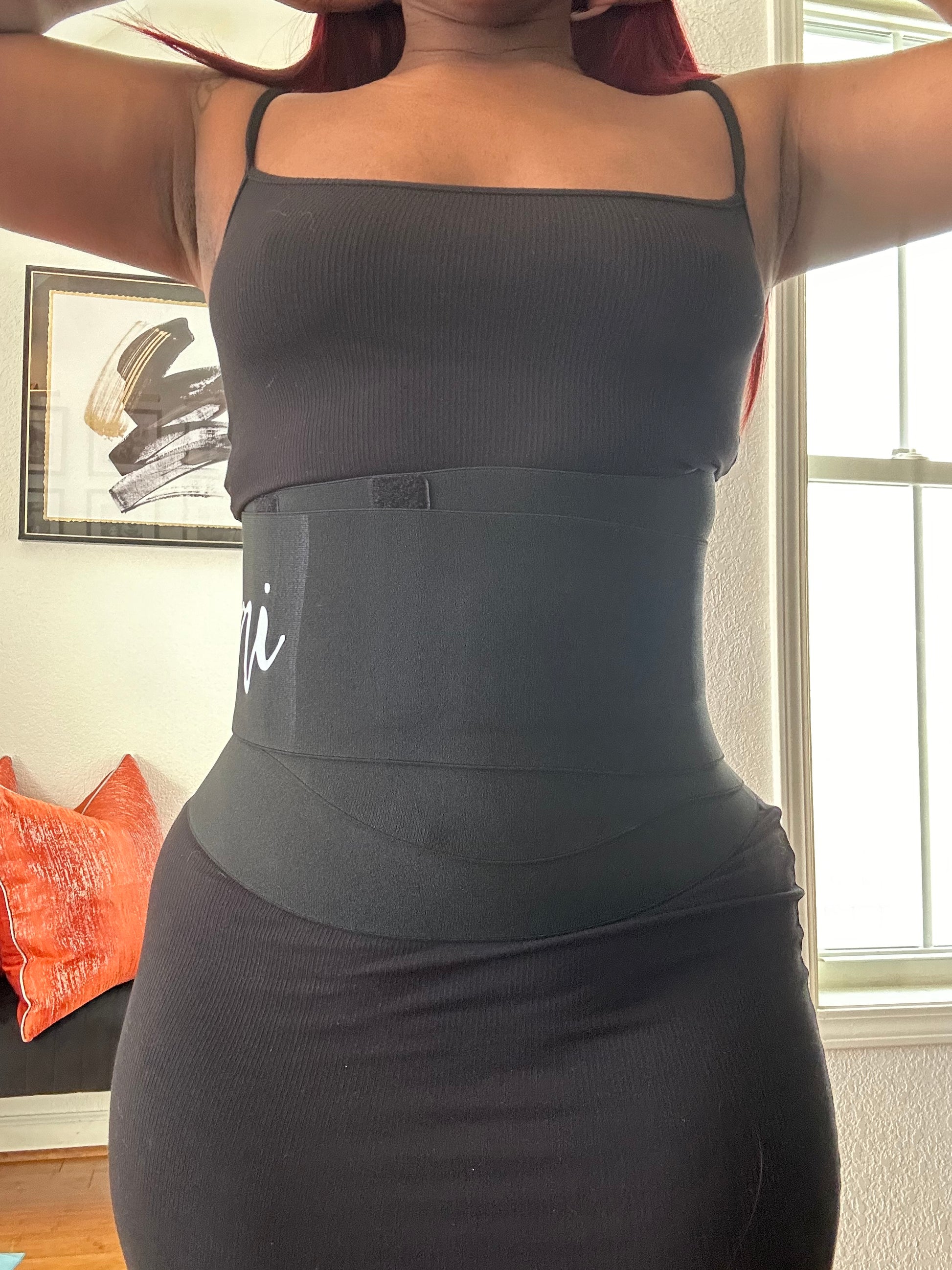 This wrap is 4m long. You will immediately start feeling a sweat coming while you’re still putting it on! Cover as much of the stomach area as you want. Why we chose this one is because almost all other wait wraps don’t allow you to cover all the extra fat under the arms in the bra area it’s always hanging out with other wraps. The SLAI Wrap allows you to cover as high and as low as you want!